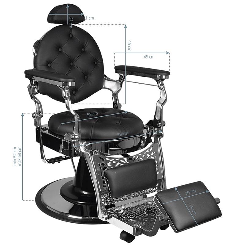 Če v ponudbi svojega salona ponujate nego brade ali iščete brivski stol, ki je drugačen od vseh ostalih, vam lahko ponudimo popoln stol za vašo brivnico. Brivski stol Giulio Silver. Udoben stol s širokim razponom nastavitev bo poskrbel za maksimalno udobje tako za osebo, ki izvaja poseg, kot za stranko salona. Stolu je poleg višine možno nastaviti tudi naklon naslonjala, dolžino naslonjala za noge in vzglavnik. Stol ni le udoben in enostaven za prilagajanje, ampak tudi nenavaden dizajn, ki se bo odlično prilegal v avantgardne in retro interierje. Tudi najmanjši detajli so izdelani z veliko natančnostjo. Visokokakovostno eko usnje, odporno na obrabo in enostavno za nego. Težko podnožje iz litega železa zagotavlja popolno stabilnost stola tudi pri večjih obremenitvah.