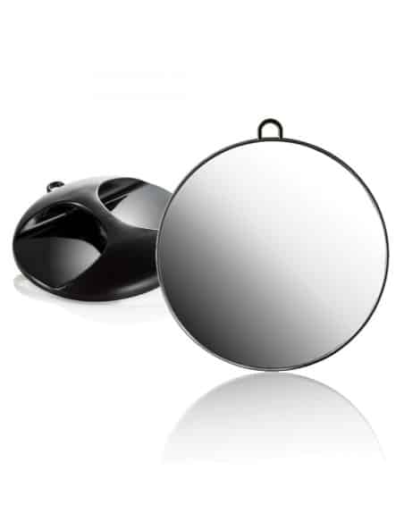 Okroglo ogledalo v črni barvi, je nepogrešljiv del vsakega kozmetičnega in frizerskega salona.