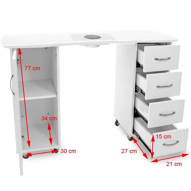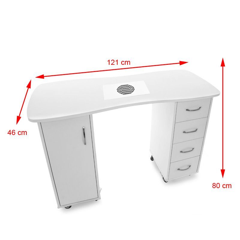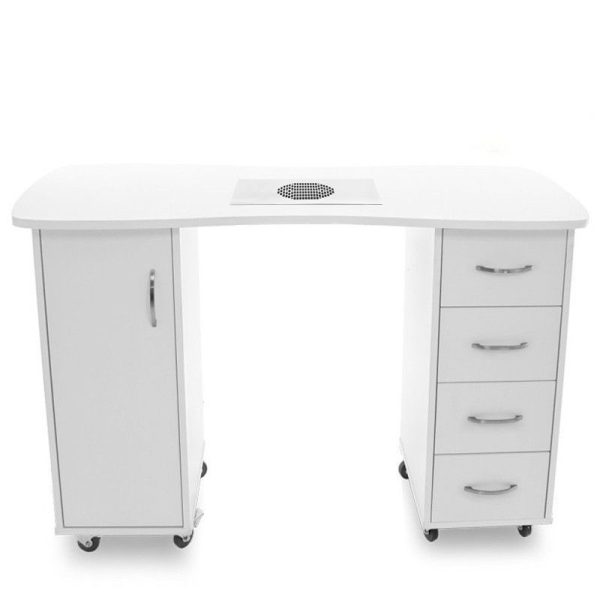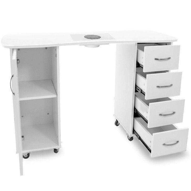Funkcionalna miza za manikuro v beli barvi je popolna za vsak kozmetični salon.